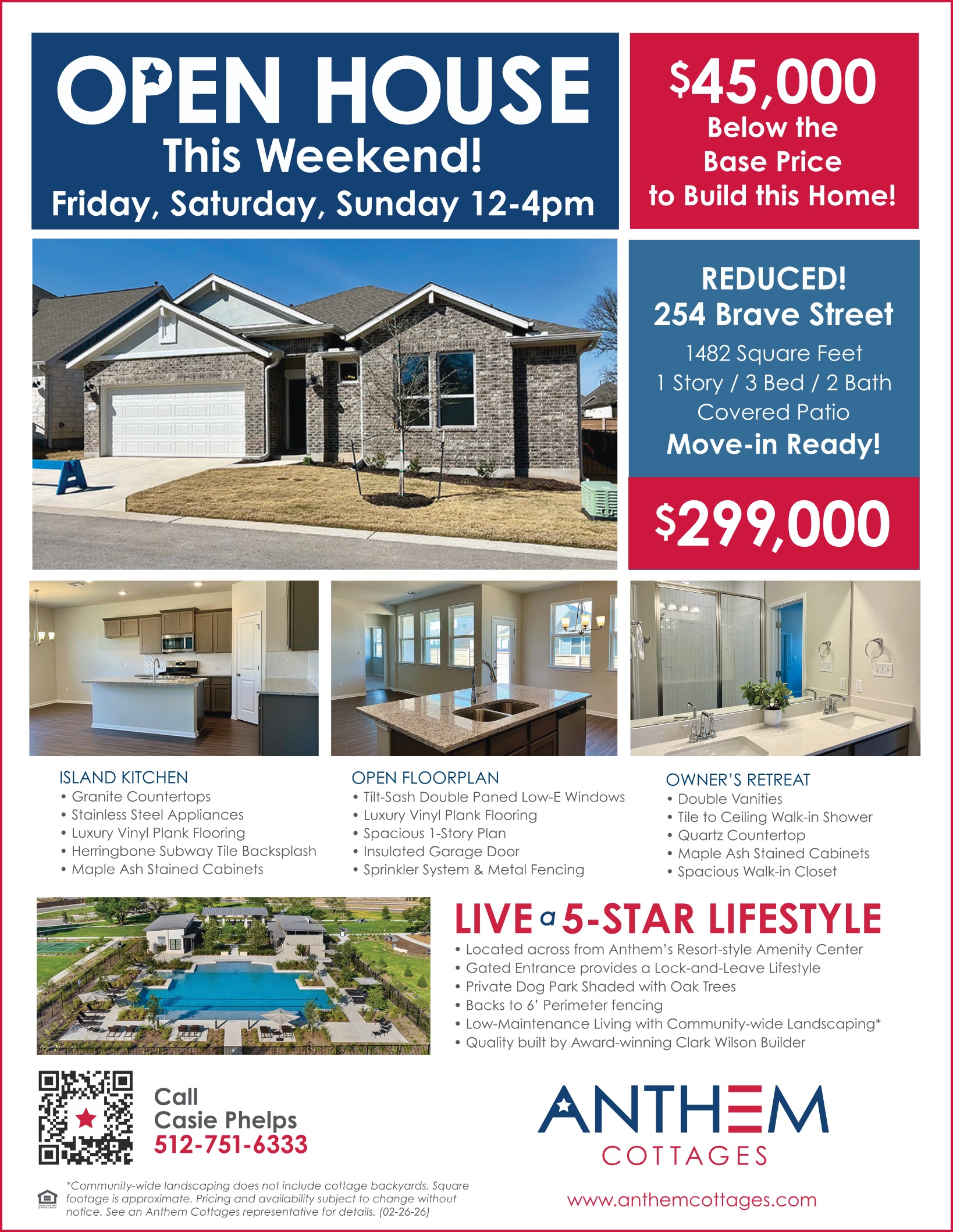Stop by on Friday, Saturday, or Sunday and see The Dove plan available for immediate move-in and priced at $299,000!