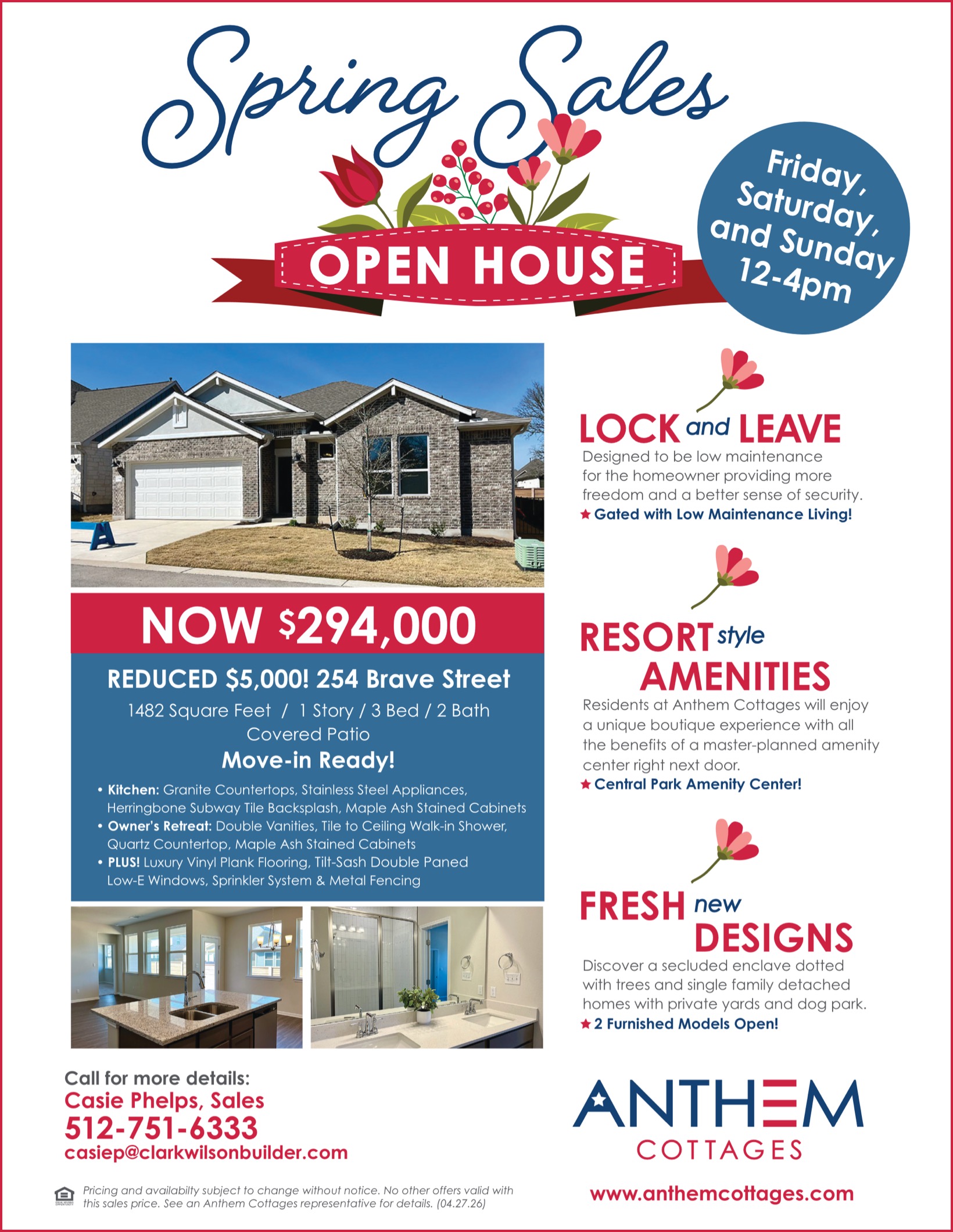 Stop by on Friday, Saturday, or Sunday and see The Dove plan available for immediate move-in and priced at $294,000!