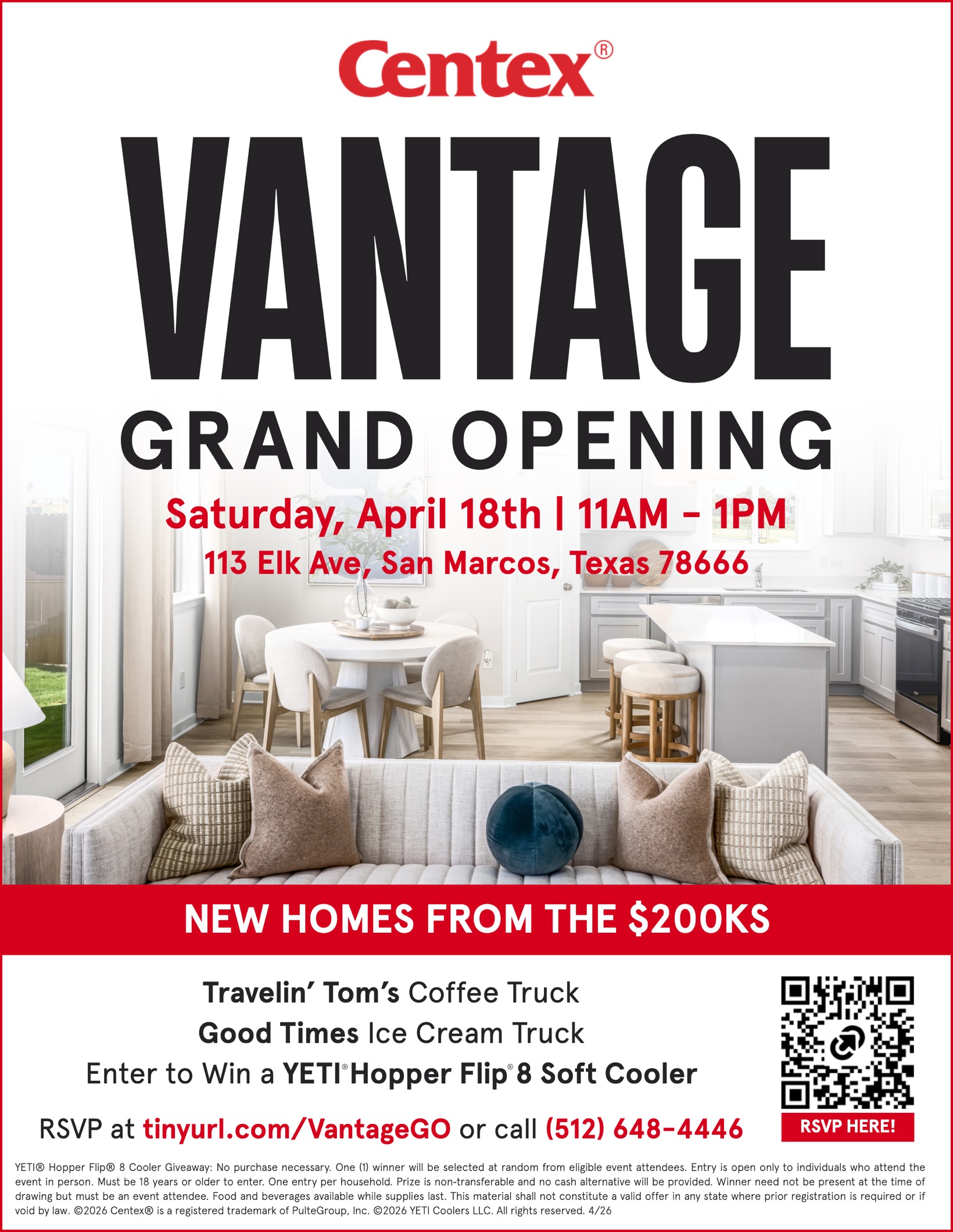 Join us this Saturday for our Grand Opening of Vantage in San Marcos
