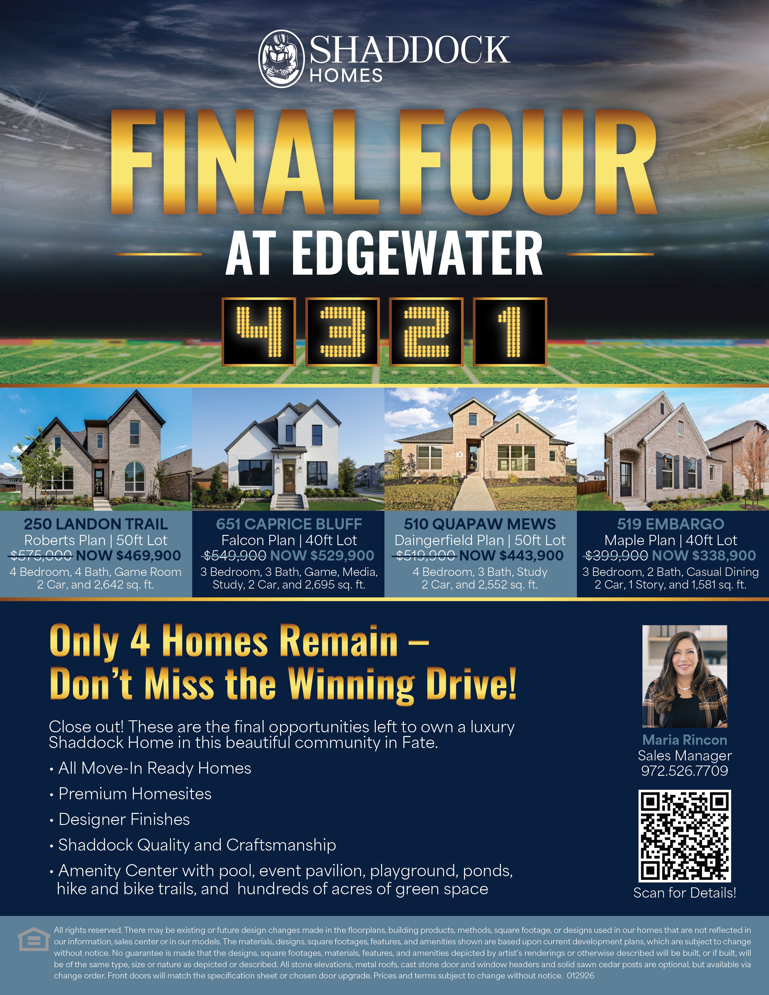 Last chances for Shaddock Homes in this community