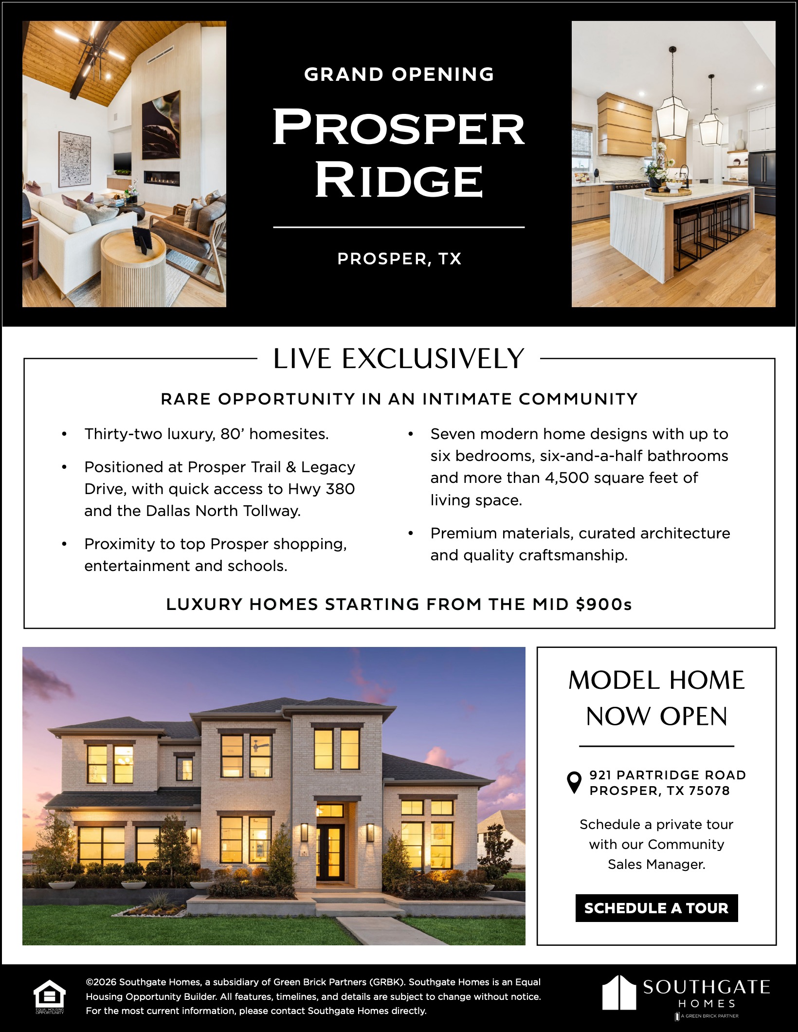 The Prosper Ridge By Southgate Homes model home in Prosper, Texas is now open