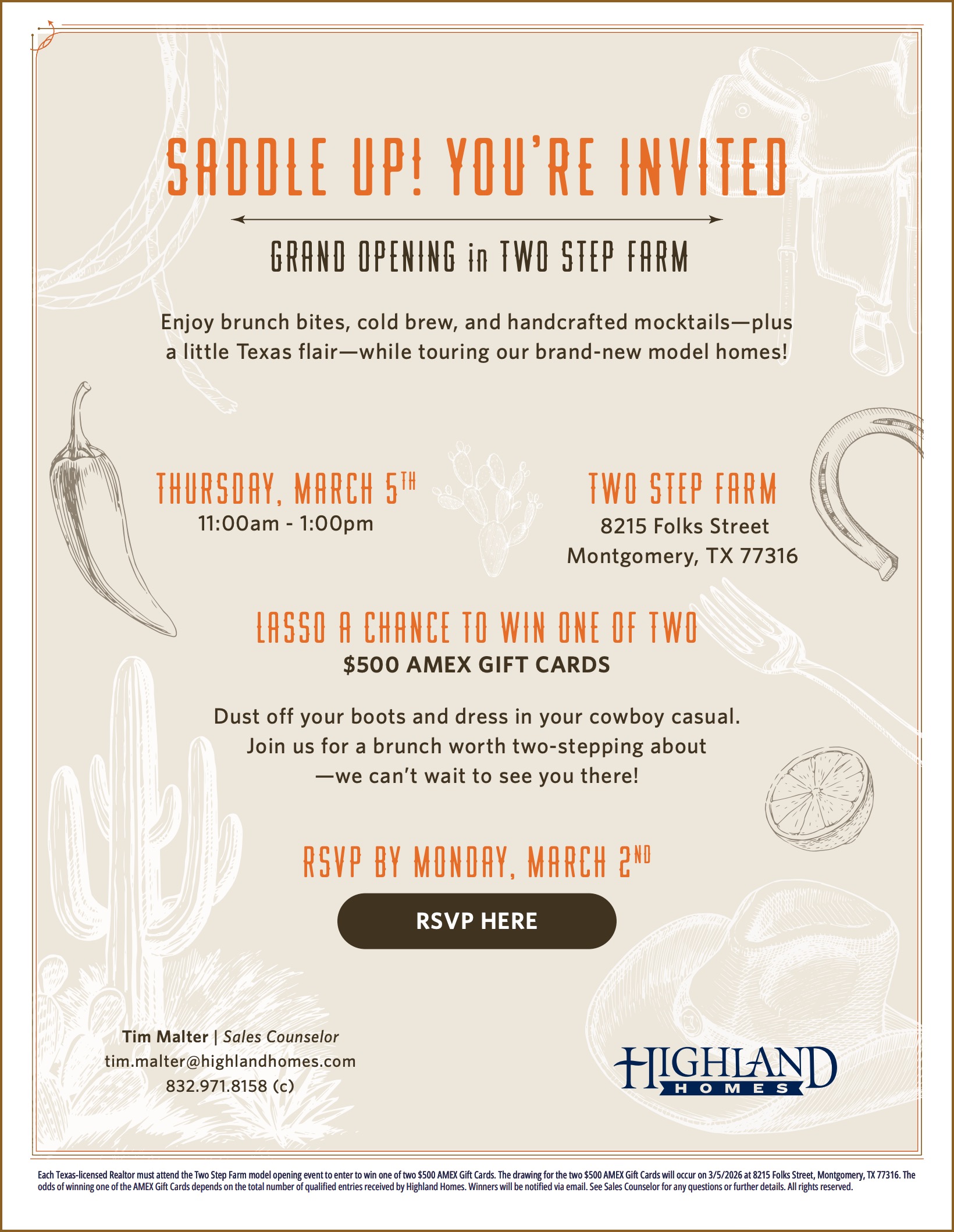 Dust off your boots and enjoy brunch bites, mocktails, and Texas flair—Thursday, March 5th.